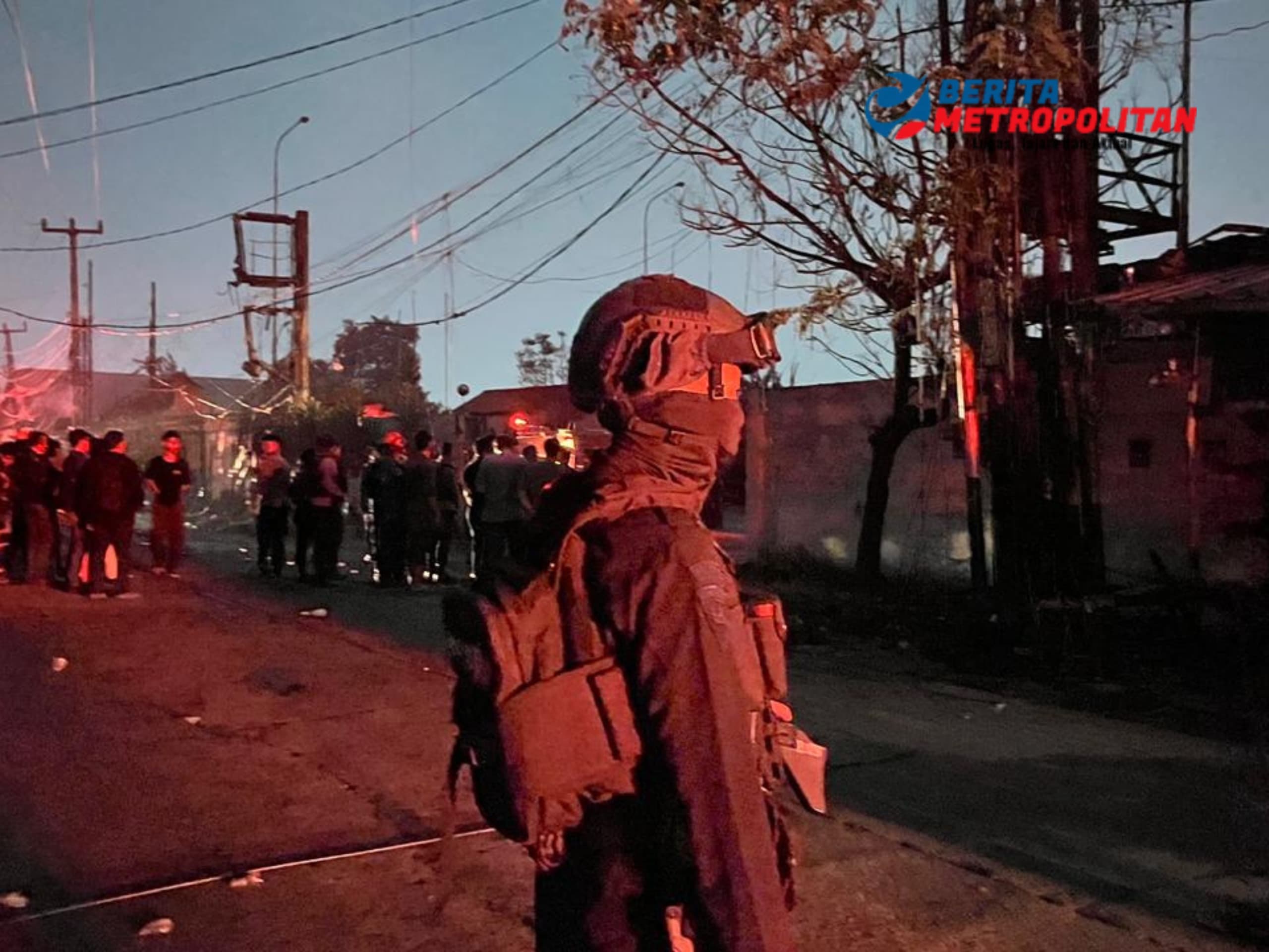 Bekasi, Beritametropolitan.id – Personel Batalyon D Pelopor Satuan Brimob Polda Metro Jaya bergerak cepat melakukan pengamanan dan penanganan kebakaran di area SPBE PT Indogas Andalan Kita, Cimuning, Mustika Jaya, Kota Bekasi, Kamis dini hari (2/4/2026). Kebakaran di fasilitas gas elpiji tersebut berhasil dikendalikan oleh petugas pemadam kebakaran, sementara aparat memastikan kondisi tetap aman bagi masyarakat sekitar.