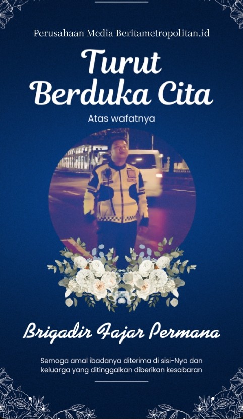 JAKARTA, Beritametropolitan.id – Kabar duka mendalam kembali menyelimuti jajaran Polda Metro Jaya. Salah satu personel terbaiknya, Brigadir Fajar Permana, anggota Direktorat Lalu Lintas (Ditlantas), meninggal dunia usai menjalankan tugas mulia mengawal kelancaran arus mudik Lebaran 2026. Almarhum diduga kuat mengalami kelelahan fisik yang sangat luar biasa (exhaustion) serta gangguan pernapasan setelah berjaga di titik-titik pelayanan masyarakat tanpa kenal lelah.