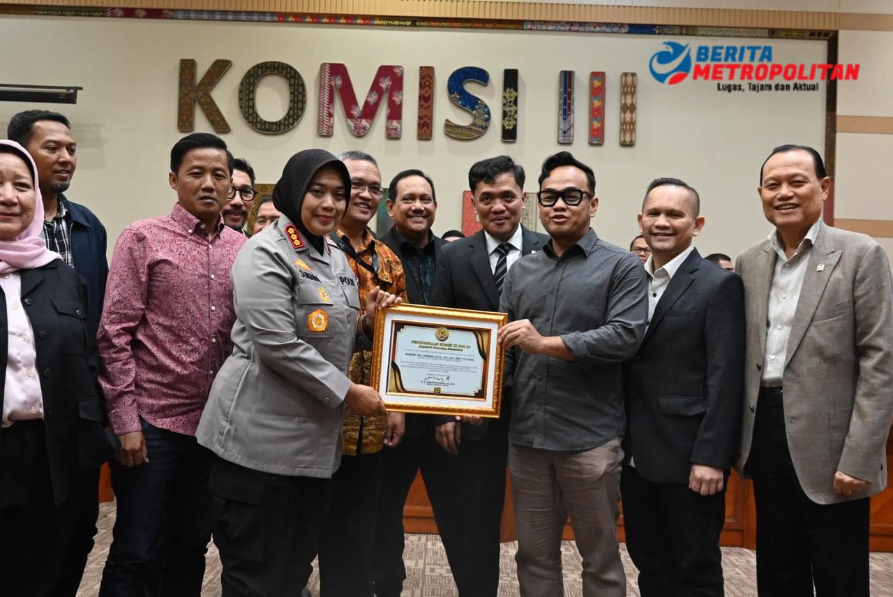 Jakarta, Beritametropolitan.id — Komisi III DPR RI memberikan penghargaan kepada Kapolres Metro Bekasi Kombes Pol Sumarni, S.I.K, SH beserta Jajarannya atas Dedikasi dan kinerjanya dalam mengawal penyelesaian permasalahan yang terjadi antara warga dan pengembang di Cluster Vasana Neo Vasana Harapan Indah kota Bekasi.