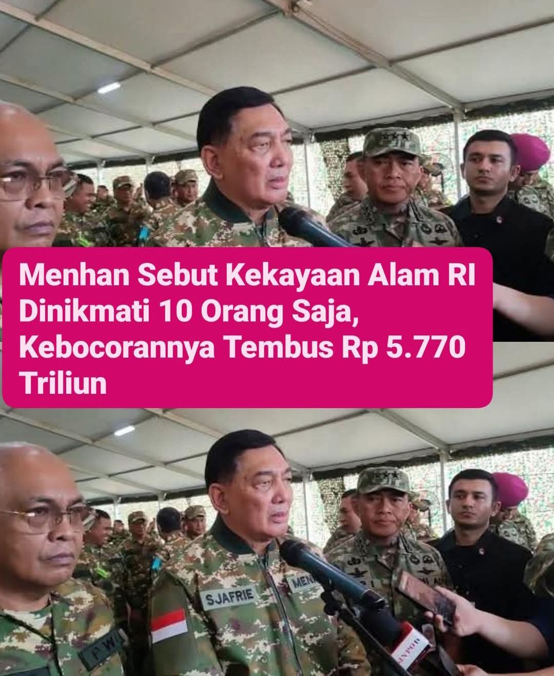 Menhan Sebut Kekayaan Alam RI Dinikmati 10 Orang Saja, Kebocorannya Tembus Rp 5.770 Triliun