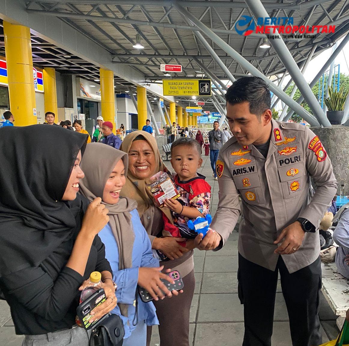 Di sela kegiatan, Kapolres bersama jajaran juga memberikan imbauan kamtibmas, mensosialisasikan call center darurat Polri 110, serta membagikan mainan kepada anak-anak penumpang kapal. Upaya ini menjadi bagian dari pendekatan humanis Polri agar masyarakat merasa aman, nyaman, sekaligus terhibur selama menunggu keberangkatan.