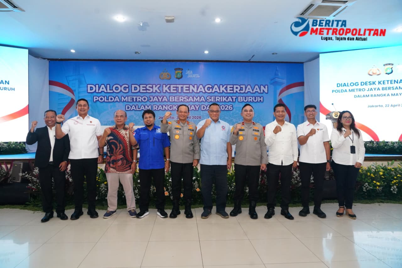 Jakarta, Beritametropolitan.id – Ditreskrimsus Polda Metro Jaya menggelar kegiatan Dialog Desk Ketenagakerjaan bersama serikat buruh dalam rangka menyambut May Day 2026. Kegiatan tersebut berlangsung di Gedung BPMJ, Rabu (22/4/2026).