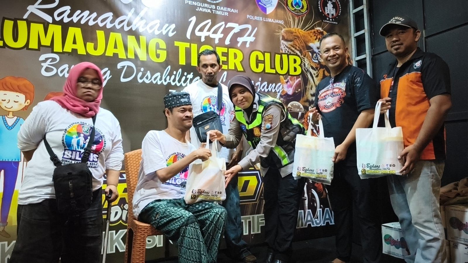 Selain berbagi takjil, Satlantas Polres Lumajang juga memberikan bingkisan bantuan sosial kepada sejumlah penyandang disabilitas yang tergabung dalam komunitas Saudara Disabilitas Lumajang.