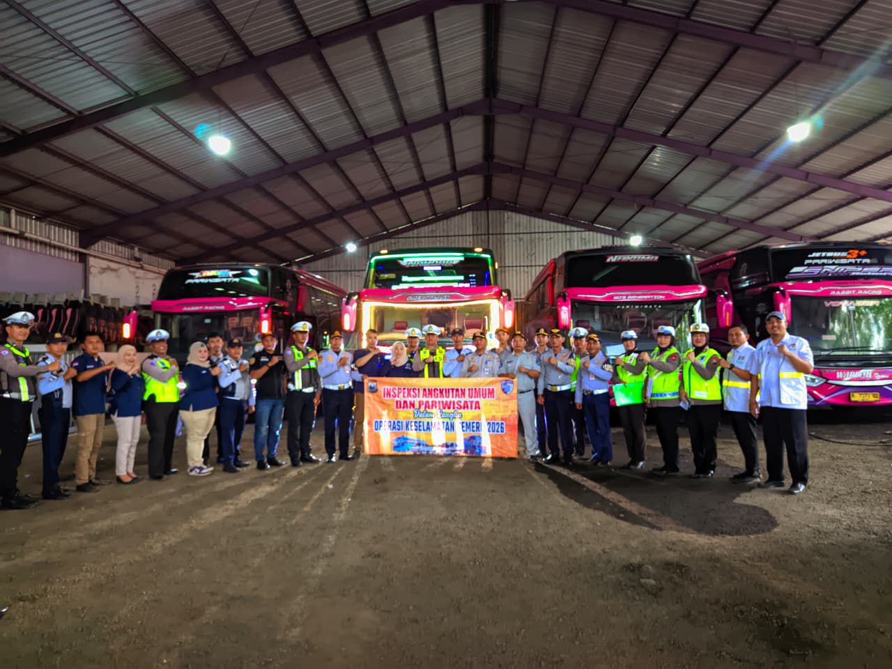Kegiatan ini dilaksanakan dalam rangka Operasi Keselamatan Semeru 2026 guna memastikan kelaikan kendaraan angkutan umum serta kondisi kesehatan pengemudi demi keselamatan berlalu lintas.